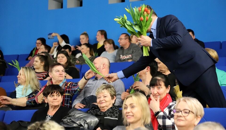 Było wesoło, słodko i kwiatowo. 12 marca w sali widowiskowej Gminnego Ośrodka Kultury w Woli Krzysztoporskiej dla wszystkich zgromadzonych tego dnia pań z okazji obchodzonego niedawno Dnia Kobiet wystąpił kabaret Czwarta Fala. Nim jednak to się stało, ze sceny wójt Roman Drozdek złożył pewną deklarację w imieniu wszystkich mężczyzn. Co obiecali panowie?