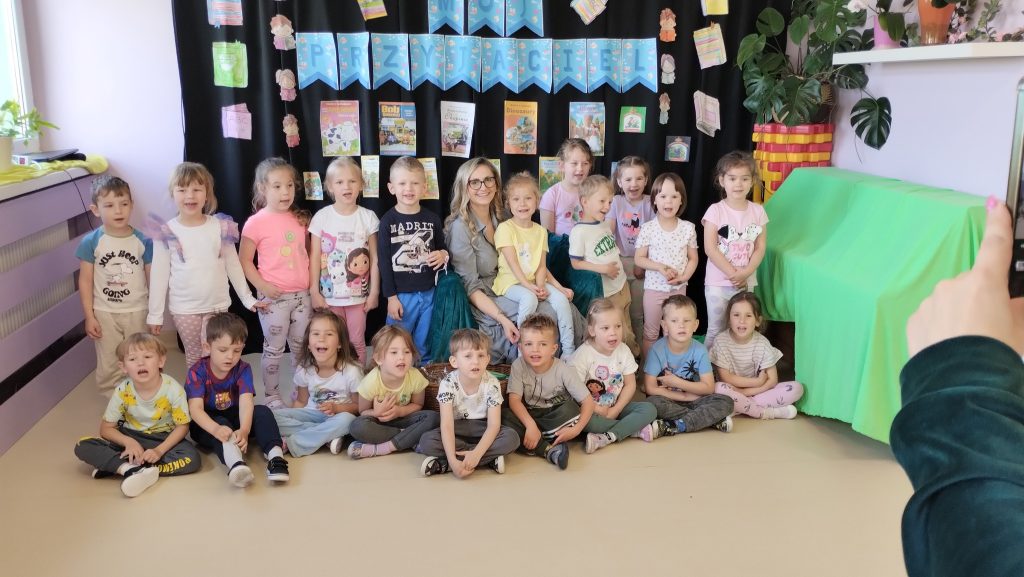 Natomiast w dniach 12-13 maja kierownik Gminnej Biblioteki Publicznej opowiadała o Bibliotece i czytała dla przedszkolaków Przedszkola Samorządowego w Woli Krzysztoporskiej.